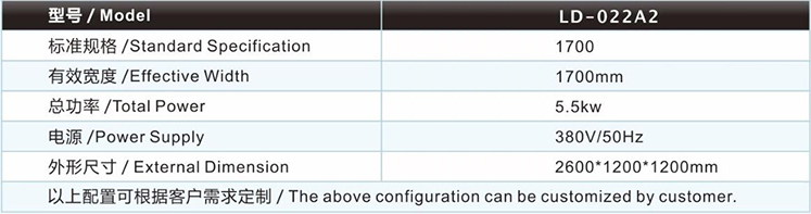 | 圓刀裁條機(jī)LD-022A2主要技術(shù)參數(shù) / Major technical parameters |
