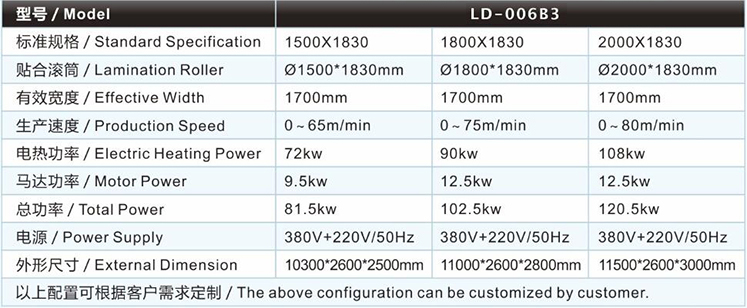 | 鞋材復(fù)合機(jī)/貼合機(jī)-立式雙輪單槽水膠高速?gòu)?fù)合機(jī)/貼合機(jī)LD-006B3的主要技術(shù)參數(shù) / Major technical parameters |