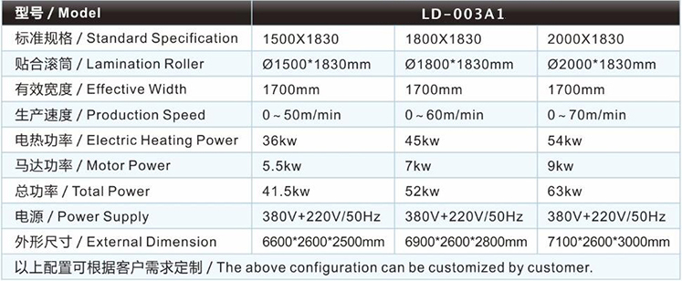 | 燈飾復(fù)合機(jī)/貼合機(jī)-立式單槽水膠復(fù)合機(jī)/貼合機(jī)LD-003A1主要技術(shù)參數(shù) / Major technical parameters |
